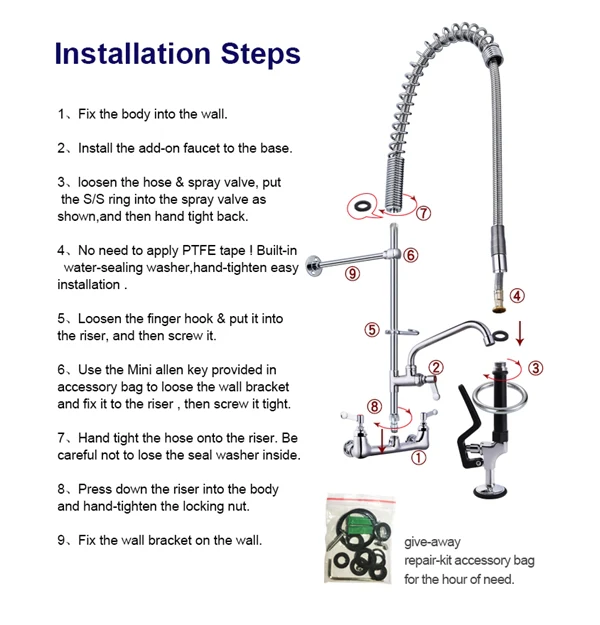 - USA Style Dual Handles Pull Out Spray CUPC Commercial Wall Kitchen Pre Rinse Dishwasher Tap Business Faucet with Swivel Nozzle.